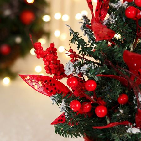 Искусственная елка настольная «Зимнее волшебство. Праздничная», 17×38 см, ПВХ ветки отгибаются. Настольная елка «Праздничная», 38 см, с красным декором — это яркий и доброжелательный акцент для новогоднего убранства. Искусственная модель высотой 38 см выполнена из мягких ПВХ-веток с отгибающимся креплением, имеет зеленую хвою и украшения красного цвета — элемент оформления в универсальном стиле, сочетающем ар-деко, советские мотивы и скандинавскую лаконичность. Решение для тех, кто ценит свет, объем и зимнюю атмосферу в формате домашнего или офисного праздника. <b> Особенности</b> <ul> <li> Тип — настольная елка, подходит для оформления ограниченного пространства: стола, полки или оконной зоны.</li> <li> Материал — ПВХ, обеспечивает мягкость формы и долговечность при каждом использовании.</li> <li> Форма — ветки расправляются сразу после распаковки, создавая пышную крону без лишних усилий.</li> <li> Декор — елочные игрушки красного цвета усиливают сезонную тематику и добавляют образу движения и тепла.</li> <li> Стиль — сочетание строгости классики, роскоши барокко и современного фьюжн в одной целостной форме.</li> </ul> <b> Праздник начинается с одного взгляда на красные шары</b> Эта елка делает рабочий стол или угол комнаты частью вашей личной зимней истории. Зеленые тона и яркие красные акценты работают вместе, чтобы передать дух Нового года и ожидание подарков. Используйте как самостоятельный элемент или как часть комплексного оформления — одинаково хорошо усиливает атмосферу чуда и семейное тепло.