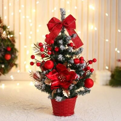 Искусственная елка настольная «Зимнее волшебство. Праздничная», 16×35 см, ПВХ ветки отгибаются. Настольная елка «Праздничная», 35 см, с красно-белым декором — это объемный и добрый акцент для новогоднего убранства. Искусственная модель высотой 35 см выполнена из мягких ПВХ-веток с отгибающимся креплением, имеет зеленую хвою и украшения красного и белого цветов — элемент оформления в универсальном стиле, сочетающем мотивы ар-деко, советской эстетики и скандинавского минимализма. Подходит как для домашнего праздника, так и для офиса или торговой точки. <b> Особенности</b> <ul> <li> Тип — настольная елка, размещается на столе, подставке или входной тумбе без необходимости установки на полу.</li> <li> Материал — ПВХ, обеспечивает мягкость формы и прочность при ежегодном использовании.</li> <li> Форма — ветки с отгибающимся креплением расправляются за минуты, создавая пышную крону сразу после распаковки.</li> <li> Декор — елочные игрушки красно-белой гаммы усиливают зимнюю тематику и добавляют образу движения, тепла и свежести.</li> <li> Стиль — соединение благородства классики, форм барокко и современного фьюжн в одной целостной композиции без лишней детализации.</li> </ul> <b> Праздник начинается с одного взгляда на елку</b> Эта елка делает пространство дома частью вашей личной истории о чуде и подарках. Зеленые тона и яркие красно-белые акценты работают вместе, чтобы передать дух Нового года и предпраздничное ожидание. Используйте ее как самостоятельный элемент или как фон для других украшений — одинаково хорошо усиливает атмосферу торжества и доброжелательность интерьера.