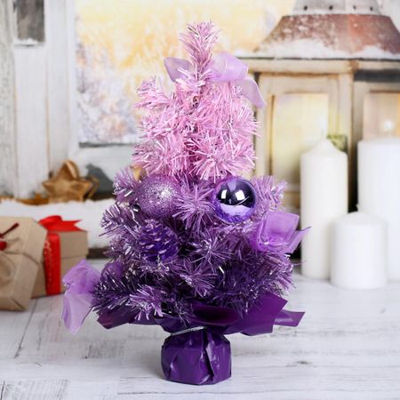 Искусственная елка настольная «Зимнее волшебство. Двойная», 30 см, с шарами, ветки ПВХ отгибаются, фиолетовая. Настольная фиолетовая елка с отгибающимися ПВХ ветками и сиреневыми шарами привнесет в интерьер необычное сочетание советского стиля, фьюжн и шебби-шика. Высота 30 см делает ее компактным украшением для праздничного стола или рабочего места. <b> Особенности</b> <ul> <li> Отгибающиеся ветки из ПВХ позволяют придать елке естественный объем.</li> <li> Фиолетовый цвет хвои создает глубокий и выразительный фон для сиреневого декора.</li> <li> Сиреневые шары дополняют оформление, подчеркивая оригинальность дизайна.</li> <li> Комбинация стилей придает изделию уникальный характер.</li> <li> Легкая конструкция упрощает переноску и расстановку в любом помещении.</li> </ul> <b> Атмосфера праздника в компактном формате</b> Эта мини-елка оживит пространство, добавит яркие акценты и создаст уютную новогоднюю атмосферу без лишних деталей. Подойдет для дома, офиса или в качестве подарка ценителям нестандартных решений.