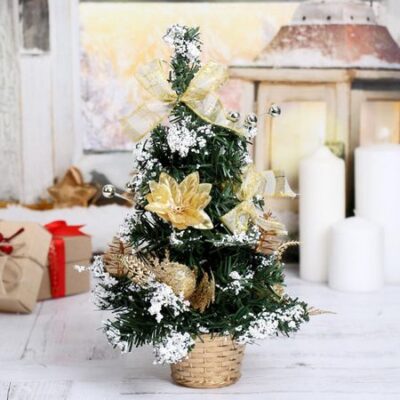 Искусственная елка настольная «Зимнее волшебство. Снег», 30 см, золото, ПВХ ветки отгибаются. Настольная елка «Снег», 30 см, золотой декор — это мягкий и праздничный акцент для новогоднего убранства. Искусственная модель высотой 30 см выполнена из ПВХ-веток с отгибающимся креплением, имеет зеленую хвою и украшения золотистого и белого цветов — элемент оформления в стиле ар-деко и новогоднего барокко для тех, кто ценит свет, объем и зимнюю атмосферу в мини-формате. <b> Особенности</b> <ul> <li> Тип — настольная елка, компактно размещается даже на узком подоконнике или рабочем столе.</li> <li> Материал — пластик и ПВХ обеспечивают мягкость формы и долгий срок службы при ежегодном использовании.</li> <li> Форма — ветки легко расправляются, создавая пышную крону за минуты после распаковки.</li> <li> Декор — елочные игрушки золотого и белого цвета усиливают зимнюю тематику и добавляют образу движения, тепла и роскоши.</li> <li> Стиль — соединение благородства классики, строгости советского дизайна и современного фьюжн в одной целостной форме без лишней вычесленности.</li> </ul> <b> Праздник начинается с одного взгляда на золотые шары</b> Эта елка делает дом частью вашей личной истории о чуде и подарках. Зеленые тона и теплый золотистый декор работают вместе, чтобы передать дух Нового года и предпраздничное ожидание. Используйте ее как самостоятельный элемент или как фон для других украшений — одинаково хорошо усиливает атмосферу торжества и доброжелательность дома.