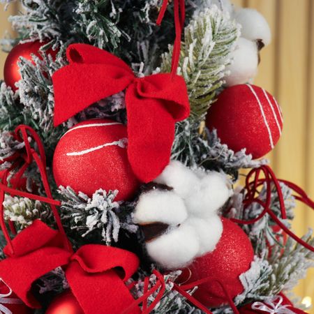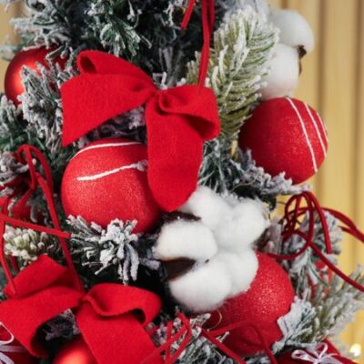 Искусственная елка настольная «Зимнее волшебство. Сюрприз в мешочке», 51×26 см, ПВХ ветки отгибаются. Настольная елка высотой 51 см с отгибающимися ПВХ ветками украшена классическими красными игрушками, отражающими стиль новогоднего барокко с советским акцентом. Ее насыщенная зеленая хвоя создает атмосферу традиционного праздника. <b> Особенности</b> <ul> <li> Гибкие ПВХ ветки легко формируются для придания естественного объема.</li> <li> Красный декор подчеркивает праздничный характер и дополняет зеленую хвою.</li> <li> Компактные размеры и устойчивое основание подходят для размещения на столе или полке.</li> <li> Дизайн в стиле новогоднего барокко с советскими мотивами создает уникальный интерьерный акцент.</li> <li> Материалы обеспечивают долговечность и простоту ухода.</li> </ul> <b> Праздничное настроение дома</b> Эта настольная елка станет уютным украшением, наполняющим пространство теплом и традициями зимних праздников.