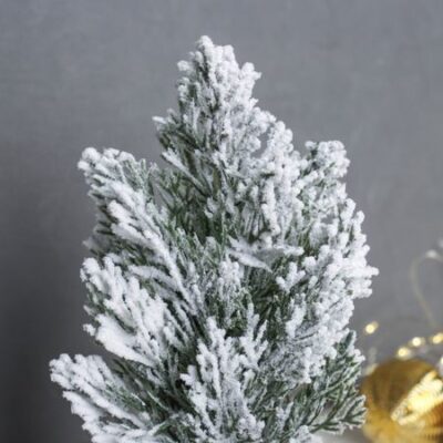 Искусственная елка настольная «Зимнее волшебство. Снег» в горшочке, 20 см, ветки ПВХ отгибаются. Настольная мини-елка с эффектом снега высотой 20 см украшена отгибающимися ПВХ ветками и размещена в горшочке. Ее зеленая хвоя, покрытая белоснежным декором, создает атмосферу зимнего праздника и подчеркивает стиль ар-деко в интерьере. <b> Особенности</b> <ul> <li> Отгибающиеся ПВХ ветки обеспечивают естественную форму и удобство размещения.</li> <li> Снежный декор придает елке праздничный и уютный вид.</li> <li> Компактный размер и устойчивое основание подходят для столов и полок.</li> <li> Дизайн в стиле ар-деко гармонично вписывается в современный интерьер.</li> <li> Высококачественные материалы гарантируют долговечность и легкий уход.</li> </ul> <b> Создаем зимнее настроение</b> Эта мини-елка помогает наполнить пространство атмосферой уюта и торжества. Она станет стильным акцентом дома или офиса, добавляя свежесть и праздничное настроение в любой сезон.