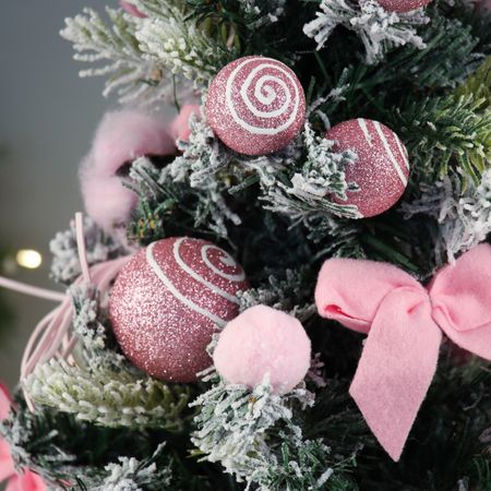 Искусственная елка настольная «Зимнее волшебство. Сюрприз в мешочке», 64×25 см, розовая. Настольная елка высотой 64 см с отгибающимися ПВХ ветками украшена розовыми елочными игрушками на фоне насыщенной зеленой хвои. В исполнении в стиле шебби-шик она вносит в интерьер легкость и праздничное настроение. <b> Особенности</b> <ul> <li> Гибкие ветки из ПВХ создают естественный объем и облегчают формирование кроны.</li> <li> Розовый декор подчеркивает изящность и придает мягкость образу елки.</li> <li> Устойчивое основание и компактная ширина обеспечивают удобство размещения на столе или комоде.</li> <li> Дизайн в стиле шебби-шик гармонично вписывается в уютные и романтичные интерьеры.</li> <li> Использованные материалы гарантируют долговечность и простоту ухода.</li> </ul> <b> Создаем праздничную атмосферу</b> Эта настольная елка станет центральным элементом декора, наполняя пространство теплом и нежностью зимних праздников.
