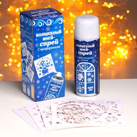 Искусственный снег спрей «Искристые снежинки», с трафаретами, белый. Новогодний спрей-иней поможет создать зимнюю сказку в вашем доме. С его помощью у вас получится создать эффект настоящего инея. Спрей придаст интерьеру праздничную свежесть и ощущение снежного утра. <b> Особенности</b> <ul> <li> Объем спрея — 250 мл.</li> <li> В комплекте есть 4 трафарета для нанесения спрея.</li> <li> Спрей создаст реалистичный снежный эффект на любых поверхностях.</li> <li> Искусственный снег подходит для использования в закрытых помещениях, потому что он не содержит вредных веществ.</li> </ul> Используйте искусственный снег для декорирования окон, елок и праздничных композиций. Добавьте праздничную атмосферу в свой дом! <b> Как удалить спрей</b> После праздников спрей легко смыть водой с мылом или мягким моющим средством.