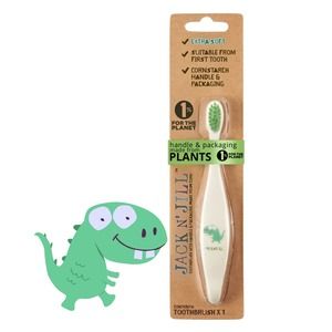 Jack N’ Jill Bio Toothbrush Dino — органическая зубная щетка нового поколения. изготовленная из 100% кукурузного крахмала. Сверхмягкие эластичные щетинки щетки имеют толщину всего 0.1 мм. Кончик каждой щетинки закруглен для дополнительной защиты нежных детских зубок и десен. Компактная чистящая головка с легкостью проникает в труднодоступные места ротовой полости. устраняет остатки пищи и налет.Зубная щетка гипоаллергенная и полностью биоразлагаемая.
