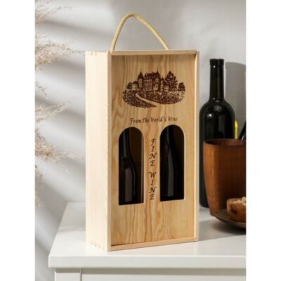 Ящик для хранения вина Доляна «Кальяри», 35×18 см, на 2 бутылки. Ящик для вина помогает сохранить вкус и аромат напитка в первозданном виде. <b> Функции</b> <ol> <li> Защита напитка от солнечного света и связанного с ним окисления.</li> <li> Защита от вибраций и внешнего шума, нарушающих молекулярную структуру напитка.</li> <li> Подарочное оформление бутылки.</li> </ol> Ящик выполнен из натурального дерева.