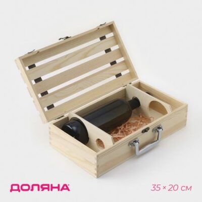 Ящик для хранения вина Доляна «Феррара», 35×20 см, на 2 бутылки. Ящик для вина помогает сохранить вкус и аромат напитка в первозданном виде. <b> Функции</b> <ol> <li> Защита напитка от солнечного света и связанного с ним окисления.</li> <li> Защита от вибраций и внешнего шума, нарушающих молекулярную структуру напитка.</li> <li> Подарочное оформление бутылки.</li> </ol> Ящик выполнен из натурального дерева.