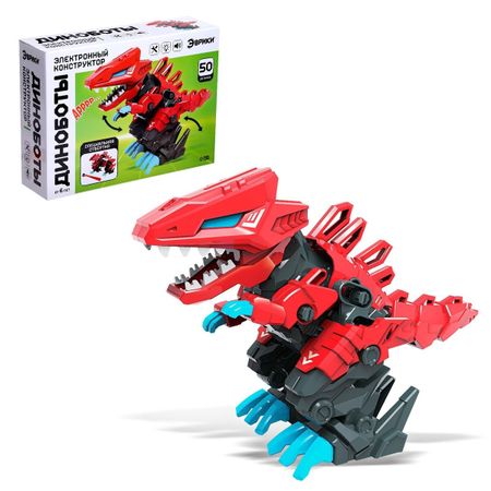 Электронный конструктор «Динаботы: Тираннозавр», световые и звуковые эффекты, 50 деталей. С электронным конструктором ребенок соберет могучего и опасного динозавра и с удовольствием поиграет с ним. Динобот умеет ходить и издавать звуки. После сборки и включения игрушка поприветствует малыша грозным ревом и пойдет вперед. <b> Особенности</b> <ul> <li> Звуковые и световые эффекты.</li> <li> Механизм движения.</li> </ul> <b> Учимся играя!</b> Сборка модели поможет в развитии мелкой моторики, логики, мышления и воображения. В процессе увлекательной игры маленький исследователь познакомится с принципом работы электричества. Ваш ребенок будет в восторге! Конструктор работает от 2 батареек типа AA, нет в комплекте.