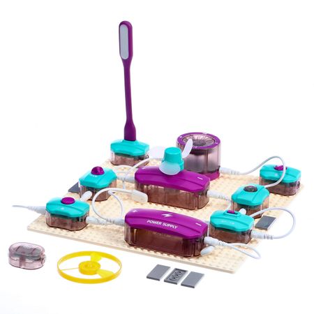 Электронный конструктор, 25 деталей, 48 схем. Электронный конструктор «Эврики» разработан специально для маленьких любителей экспериментов. Набор погрузит ребенка в мир физики и электроники, расскажет, как работать с электрическим сопротивлением, и какую роль в цепи выполняет каждая деталь! Отлично подойдет детям от 6 лет. <b> Особенности</b> <ul> <li> В наборе вы найдете 25 деталей и 48 схем сборки. </li> <li> Детали изготовлены из прочного и безопасного пластика, легко соединяются между собой специальными проводками.</li> <li> Подробная инструкция ответит на все вопросы. </li> <li> Все схемы подробно описаны. К ним прилагаются понятные рисунки для сборки. Но в них не указан результат эксперимента. Чтобы узнать его, необходимо проверить все самостоятельно. </li> <li> После описания каждой схемы есть сноски с дополнительной интересной информацией. </li> <li> Важно следить за маркировкой положительных и отрицательных выходов при подключении проводов. </li> <li> Для работы с набором потребуются 3 батарейки типа АА напряжением 1,5 В. Не входят в комплект. </li> </ul> <b> С этим конструктором можно собрать</b> <ul> <li> Механизм разрыва цепи — или же выключатель. Индикатором его работы выступает простая лампочка. </li> <li> Схему для запускания яркого пропеллера в воздух. </li> <li> Механизм с датчиком света. Если накрыть светочувствительный модуль ладонью, то включится лампочка. </li> <li> И многие другие интересные конструкции! </li> </ul> <b> Меры предосторожности</b> <ul> <li> Пользоваться под присмотром взрослых. </li> <li> Не погружать в воду, избегать попадания жидкостей, песка, грязи. </li> <li> Не оставлять вблизи источников тепла или под прямыми солнечными лучами. </li> <li> Не разбирать модули конструктора и не ронять их. </li> </ul> <b> Играйте и развивайтесь вместе с «Эврики»!</b>
