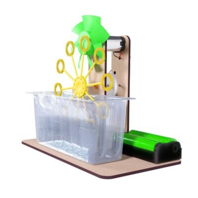 Электронный конструктор «Генератор пузырей». Электронный конструктор «Генератор пузырей» — новый уровень в пускании мыльных пузырей. Соберите установку, которая будет сама выдувать мыльные пузыри. Вам останется лишь успевать доливать жидкость! <b> Особенности электронного конструктора</b> <ul> <li> Основа собирается из деревянных элементов.</li> <li> На основу крепятся электронные компоненты: блок для батареек и электромоторы.</li> <li> Вентилятор и колесо из палочек для мыльных пузырей крепятся к электромоторам.</li> <li> После сборки поставьте ванночку и налейте в нее мыльный раствор.</li> <li> Вставьте 2 батарейки типоразмера AA (нет в комплекте) и включите установку.</li> </ul> Для генератора подойдет жидкость для мыльных пузырей. <b> Не только увлекательно, но и полезно!</b> Собирая электронный конструктор, ребенок узнает, как работают электрические цепи и зачем они нужны, а также построит их самостоятельно.