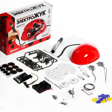 Электронный конструктор «Электро-жук», интерактивный: ездит по линии, на батарейках. Электронный конструктор «Электро-жук» создан специально для маленьких любителей робототехники. Ребенок самостоятельно соберет необычного робота, узнает, что такое трансмиссия и по какому принципу она работает. <b> Особенности</b> <ul> <li> В комплекте есть все для сборки: 2 независимых моторчика, детали, отвертка, инструкция.</li> <li> Придумайте любой маршрут с помощью маркера, умный жук сам поедет по линии.</li> <li> Кнопка включения находится снизу электронного жука.</li> <li> Для работы потребуется 3 батарейки типоразмера AAA (в комплект не входят).</li> </ul> <b> Увлекательно и полезно!</b> Сборка конструктора стимулирует развитие логического мышления, пространственного воображения и моторики рук у детей. А еще помогает освоить основы робототехники и электроники и делает обучение интересным и увлекательным. Конструктор подойдет для детей от 8 лет.