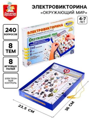 Электронная викторина «Окружающий мир» — это увлекательная игра, которая поможет детям узнать больше о окружающем нас мире. С помощью 240 вопросов и 8 тематических разделов ребёнок расширит кругозор, разовьёт логику и память.ОсобенностиИгра охватывает разнообразные аспекты — профессии, время, безопасность и дорожные знаки.Поля с яркими иллюстрациями делают процесс игры ещё интереснее. Они помогают визуализировать информацию и лучше запоминать факты.Ребёнок может самостоятельно проверять ответы, что делает игру не только познавательной, но и интерактивной.Польза для развитияВикторина способствует развитию внимания, логического мышления и памяти. Ребёнок учится анализировать информацию, находить связи между явлениями и запоминать важные факты. Игра подходит для детей от 4 до 7 лет и станет отличным подарком для любознательных ребят.