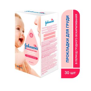 Прокладки для груди Johnson’s baby в период грудного вскармливания — это: Защита от протекания: мягкий внутренний слой прокладок великолепно впитывает влагу, сохраняя кожу сухой Незаметность: анатомическая форма делает их практически незаметными под одеждой Комфорт: не ограничивают свободу движений, а клейкая полоска не позволяет прокладкам сдвигатьсяПрокладки для груди Johnson’s baby подходят как для специальных бюстгальтеров для кормления, так и для обычного белья.