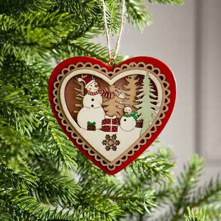 Ёлочная игрушка «Красное сердце со снеговиком», от батареек, свечение теплое белое. Разнообразные новогодние световые фигуры — это прекрасный вариант оформления к Новому Году и любому другому торжеству, а также отличное дополнение интерьера. Сегодня такие фигуры довольно активно используются в качестве светового оформления различных кафе, торговых центров, магазинов и ночных клубов, равно как и для создания новогоднего оформления в доме, офисе, и даже на улице. Знакомые на первый взгляд фигурки снабжены одним или несколькими светодиодами, что превращает их из привычных в сказочные. Полные света и нежного сияния игрушки работают от батареек, поэтому не ограничивайте свою фантазию – вешайте их куда угодно, даже на самые высокие ветки, их отовсюду будет видно! Изделие станет эффектным дополнением к гирлянде или даже оригинальной заменой ей. Игрушка ярко светится, потребляет совсем мало энергии и не нагревается.