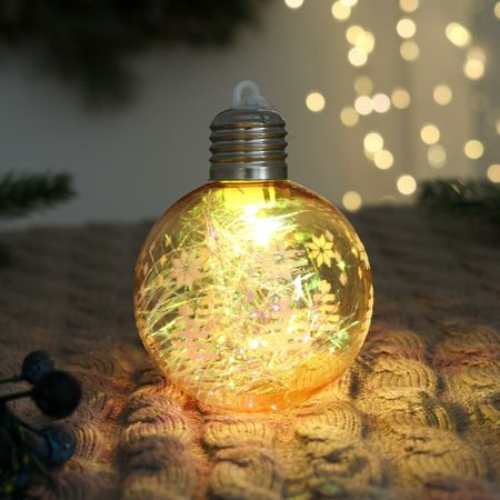 Ёлочная игрушка «Пора чудес. Ёлочки», светящаяся, пластиковая, d=8 см, прозрачный. Светящаяся елочная игрушка «Шар с елками» прозрачная с оранжевыми акцентами — это добрая и атмосферная деталь для новогоднего убранства. Пластиковый шар с рисунком маленьких елок и мягкой внутренней подсветкой создает ощущение зимней сказки — украшение в датском стиле для тех, кто ценит свет, форму и дух праздника в понятной и теплой подаче. <b> Особенности</b> <ul> <li> Тип — светящаяся игрушка на елку, используется как самостоятельный элемент или часть общей композиции в предпраздничный период.</li> <li> Материал — прочный пластик, обеспечивающий долговечность и безопасность при ежегодном использовании.</li> <li> Подсветка — встроенная, работает от батареек, дает мягкое мерцающее освещение, усиливающее ощущение чуда и уюта.</li> <li> Форма — шар, дополненный прозрачностью и изображением мини-елок внутри, создающий эффект зимней иллюстрации.</li> <li> Цвет — прозрачное основание с оранжевыми деталями, добавляет оформлению свежести, света и домашнего тепла без давления на дизайн интерьера.</li> </ul> <b> Праздник начинается с первого мерцания внутри шара</b> Эта игрушка делает елку частью вашей истории о подарках, уюте и ожидании чуда. Прозрачный корпус, елочки и мягкий свет работают вместе, чтобы передать дух Нового года и семейную гармонию. Используйте ее как центральный акцент или рядом с другими украшениями — одинаково мягко усиливает атмосферу торжества и добрую предпраздничную эмоцию.