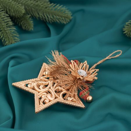Ёлочная игрушка «Зимнее волшебство. Звезда с цветком» пластик, 12х12 см, золото. Ёлочная игрушка «Звезда с цветком» — это элегантный и образной акцент для новогоднего убранства. Украшение в виде звезды с декоративным наполнением внутри подходит для елки, дома или офиса — элемент праздничного декора в стиле ар-деко и новогоднего барокко для тех, кто ценит свет, форму и зимнюю магию в теплой и запоминающейся подаче. <b> Особенности</b> <ul> <li> Тип — пластиковая игрушка на елку, используется как самостоятельный элемент или часть составного оформления в предпраздничное время.</li> <li> Материал — прочный пластик с резной поверхностью и внутренним наполнением, сохраняет внешний вид после нескольких сезонов использования.</li> <li> Цвет — золотистый, добавляет оформлению сияния, тепла и ощущения праздника в классической новогодней палитре.</li> <li> Форма — звезда с цветком внутри, универсальный символ Нового года, усиливающий атмосферу чуда и семейного уюта.</li> <li> Стиль — сочетание роскоши ар-деко и богатства новогоднего барокко в одной целостной форме без излишней вычесленности.</li> </ul> <b> Праздник начинается с первой звезды и ее цветка внутри</b> Эта игрушка превращает елку в угол вашей истории о подарках, свете и зимнем волшебстве. Золотистые тона и мягкий рисунок работают вместе, чтобы передать дух торжества и семейное тепло. Используйте ее как центральный акцент или рядом с другими украшениями — одинаково деликатно усиливает атмосферу праздника и добрую предпраздничную гармонию.