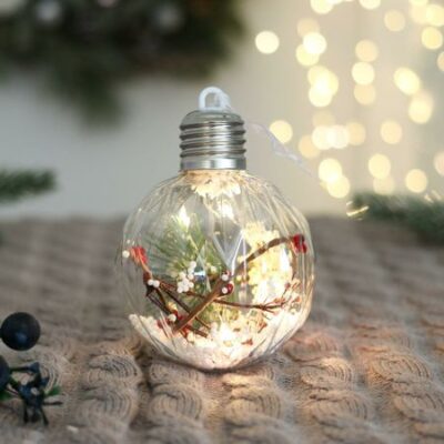 Ёлочная игрушка «Пора чудес. Снег», светящаяся, пластиковая, d=8 см, прозрачный. Светящаяся елочная игрушка «Шар со снегом» прозрачная с коричневым акцентом — это необычный и атмосферный акцент для новогоднего декора. Пластиковый шар с внутренним наполнением в виде снежинок и мягкой подсветкой создает ощущение зимней магии — элемент убранства в скандинавском стиле для тех, кто ценит свет, форму и дух праздника в современной и доброжелательной подаче. <b> Особенности</b> <ul> <li> Тип — светящаяся елочная игрушка, используется как самостоятельный акцент или часть композиции при оформлении елки и интерьера.</li> <li> Материал — прочный пластик, обеспечивающий долговечность и безопасность использования в течение нескольких праздничных сезонов.</li> <li> Подсветка — работает от батареек, создает мягкое мерцающее освещение внутри, усиливая ощущение чуда и предпраздничного настроения.</li> <li> Форма — шар, классическая форма для новогоднего декора, дополненная прозрачным корпусом и снежным наполнением.</li> <li> Цвет — сочетание прозрачного основания и коричневых деталей, добавляет оформлению тепла, натуральности и зимней свежести в датской гамме.</li> </ul> <b> Праздник начинается с первого мерцания</b> Эта игрушка делает елку частью вашей истории о подарках, чуде и тихой зимней сказке. Прозрачный шар и свет внутри работают вместе, чтобы передать дух Нового года и семейное тепло. Используйте ее как центральный акцент или рядом с другими украшениями — одинаково мягко усиливает атмосферу торжества и добрую предпраздничную гармонию.
