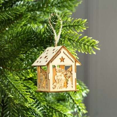 Ёлочная игрушка «Домик с Дедом Морозом и елкой», от батареек, свечение теплое белое. <b> Батарейки идут в подарок!</b> Разнообразные новогодние световые фигуры — это прекрасный вариант оформления к Новому Году и любому другому торжеству, а также отличное дополнение интерьера. Сегодня такие фигуры довольно активно используются в качестве светового оформления различных кафе, торговых центров, магазинов и ночных клубов, равно как и для создания новогоднего оформления в доме, офисе, и даже на улице. Знакомые на первый взгляд фигурки снабжены одним или несколькими светодиодами, что превращает их из привычных в сказочные. Полные света и нежного сияния игрушки работают от батареек, поэтому не ограничивайте свою фантазию – вешайте их куда угодно, даже на самые высокие ветки, их отовсюду будет видно! Изделие станет эффектным дополнением к гирлянде или даже оригинальной заменой ей. Игрушка ярко светится, потребляет совсем мало энергии и не нагревается.