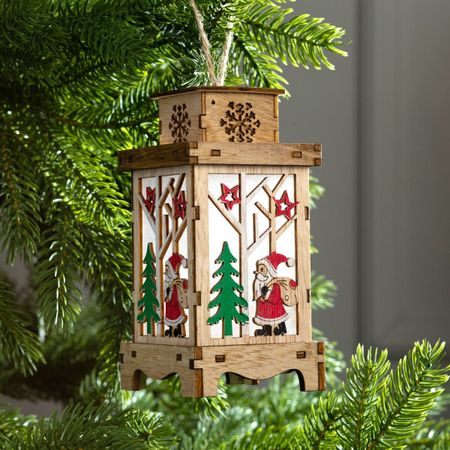 Ёлочная игрушка «Фонарь с Дедом Морозом», от батареек, свечение теплое белое. Разнообразные новогодние световые фигуры — это прекрасный вариант оформления к Новому Году и любому другому торжеству, а также отличное дополнение интерьера. Сегодня такие фигуры довольно активно используются в качестве светового оформления различных кафе, торговых центров, магазинов и ночных клубов, равно как и для создания новогоднего оформления в доме, офисе, и даже на улице. Знакомые на первый взгляд фигурки снабжены одним или несколькими светодиодами, что превращает их из привычных в сказочные. Полные света и нежного сияния игрушки работают от батареек, поэтому не ограничивайте свою фантазию – вешайте их куда угодно, даже на самые высокие ветки, их отовсюду будет видно! Изделие станет эффектным дополнением к гирлянде или даже оригинальной заменой ей. Игрушка ярко светится, потребляет совсем мало энергии и не нагревается.