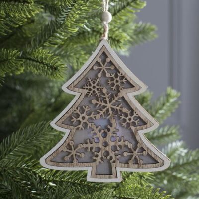 Ёлочная игрушка «Ёлочка в снежинках», от батареек, свечение теплое белое. Разнообразные новогодние световые фигуры — это прекрасный вариант оформления к Новому Году и любому другому торжеству, а также отличное дополнение интерьера. Сегодня такие фигуры довольно активно используются в качестве светового оформления различных кафе, торговых центров, магазинов и ночных клубов, равно как и для создания новогоднего оформления в доме, офисе, и даже на улице. Знакомые на первый взгляд фигурки снабжены одним или несколькими светодиодами, что превращает их из привычных в сказочные. Полные света и нежного сияния игрушки работают от батареек, поэтому не ограничивайте свою фантазию – вешайте их куда угодно, даже на самые высокие ветки, их отовсюду будет видно! Изделие станет эффектным дополнением к гирлянде или даже оригинальной заменой ей. Игрушка ярко светится, потребляет совсем мало энергии и не нагревается.