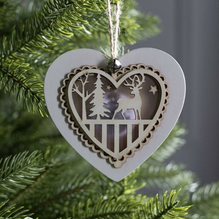 Ёлочная игрушка «Сердце с оленем», от батареек, свечение теплое белое. <b> Батарейки идут в подарок!</b> Разнообразные новогодние световые фигуры — это прекрасный вариант оформления к Новому Году и любому другому торжеству, а также отличное дополнение интерьера. Сегодня такие фигуры довольно активно используются в качестве светового оформления различных кафе, торговых центров, магазинов и ночных клубов, равно как и для создания новогоднего оформления в доме, офисе, и даже на улице. Знакомые на первый взгляд фигурки снабжены одним или несколькими светодиодами, что превращает их из привычных в сказочные. Полные света и нежного сияния игрушки работают от батареек, поэтому не ограничивайте свою фантазию – вешайте их куда угодно, даже на самые высокие ветки, их отовсюду будет видно! Изделие станет эффектным дополнением к гирлянде или даже оригинальной заменой ей. Игрушка ярко светится, потребляет совсем мало энергии и не нагревается.