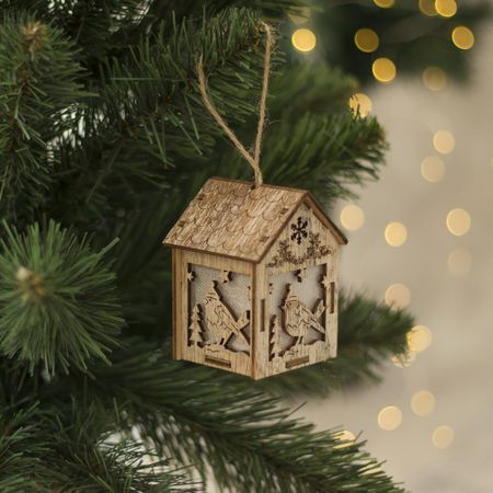 Ёлочная игрушка «Домик с птицей», от батареек, свечение теплое белое. <b> Батарейки идут в подарок!</b> Разнообразные новогодние световые фигуры — это прекрасный вариант оформления к Новому Году и любому другому торжеству, а также отличное дополнение интерьера. Сегодня такие фигуры довольно активно используются в качестве светового оформления различных кафе, торговых центров, магазинов и ночных клубов, равно как и для создания новогоднего оформления в доме, офисе, и даже на улице. Знакомые на первый взгляд фигурки снабжены одним или несколькими светодиодами, что превращает их из привычных в сказочные. Полные света и нежного сияния игрушки работают от батареек, поэтому не ограничивайте свою фантазию – вешайте их куда угодно, даже на самые высокие ветки, их отовсюду будет видно! Изделие станет эффектным дополнением к гирлянде или даже оригинальной заменой ей. Игрушка ярко светится, потребляет совсем мало энергии и не нагревается.