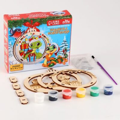 Ёлочная игрушка из дерева своими руками на новый год «Подарок от змейки», набор для творчества, символ 2025. С заготовкой для росписи по дереву у вас получится объемная многослойная деревянная игрушка на елку. <b> Особенности набора</b> <ul> <li> В комплект входят 3 деревянные заготовки, которые вместе образуют объемный рисунок.</li> <li> На коробке вы найдете пример раскрашенной игрушки.</li> <li> Для сборки используйте клей. (в набор не входит)</li> <li> Размер готовой игрушки 10 х 10 см.</li> </ul> <b> Чем полезно занятие росписью</b> Такое творчество воспитывает художественный вкус, тренирует пространственное мышление, мелкую моторику и помогает весело и с пользой провести время.