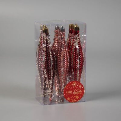 Ёлочные игрушка 6 шт. «Сосулька нить блеск» 15.5×3 см, розовый красный. Ёлочные игрушки «Сосульки с блеском» — это доброжелательный и яркий акцент для новогоднего убранства. Украшения в виде сосулек с мерцающим принтом подходят для елки, подарков или окон — элемент праздничного декора в стиле советской эстетики и новогоднего барокко для тех, кто ценит свет, форму и атмосферу зимнего чуда в теплой и запоминающейся подаче. <b> Особенности</b> <ul> <li> Тип — пластиковая игрушка на елку, используется как самостоятельный комплект или часть общей композиции при оформлении дома или офиса.</li> <li> Комплект — 6 украшений, достаточно для создания заметного акцента на елке или в интерьере без лишней детализации.</li> <li> Материал — прочный пластик, обеспечивающий долговечность и сохранение яркости после нескольких сезонов использования и хранения.</li> <li> Цвет — красный с декоративным мерцающим напылением, создающий ощущение движения, тепла и классического новогоднего настроения в универсальной гамме.</li> <li> Форма — сосулька, символ Нового года, усиливающий ощущение зимы, света и семейного тепла в любом пространстве.</li> </ul> <b> Праздник начинается с первой сосульки и ее мерцающего узора</b> Этот набор делает елку частью вашей истории о подарках, свете и доброй магии декабря. Красные тона и блестящий рисунок работают вместе, чтобы передать дух торжества и тепло домашних традиций. Используйте их как основные акценты или рядом с другими игрушками — одинаково мягко усиливая атмосферу праздника и предпраздничную гармонию.