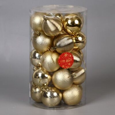 Ёлочные игрушки «Ассорти — ажур», шары новогодние, пластик, набор d=6 см, 25 шт., золотистый. Пластиковые новогодние шары золотистого цвета — это плотный набор для тех, кто хочет создать праздничную атмосферу через свет и порядок. Игрушки диаметром 6 см выполнены в классической форме и подходят под стили ар-деко, барокко и строгой классики. Комплект из 25 элементов идеально подходит для равномерного украшения елки или как фоновое наполнение в уже сложившейся композиции. <b> Почему выбирают этот набор</b> <ul> <li> <strong> Много игрушек — меньше усилий:</strong> 25 шаров достаточно, чтобы заполнить елку светом и создать законченный образ без докупки дополнительных аксессуаров.</li> <li> <strong> Золотистый оттенок — мягкий блеск вместо яркости:</strong> Цвет добавляет интерьеру зимнего настроения за счет отражений гирлянд, а не насыщенного сияния.</li> <li> <strong> Универсальный размер:</strong> Шары легко размещаются на любой елке — больших и маленьких, пышных и скромных.</li> <li> <strong> Прочный пластик — надежность в каждом элементе:</strong> Материал устойчив к повреждениям и сохраняет внешний вид годами.</li> </ul> <b> Ёлка как полотно света</b> Этот набор создан для тех, кто любит ощущение праздника через равномерность и мерцание. Золотые шары становятся невидимыми участниками новогодней истории — важными, но ненавязчивыми. Подходят как для первого украшения, так и для продолжения семейной традиции без лишних акцентов.