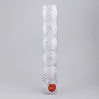 Ёлочные игрушки «Ажурные завитки», шары новогодние, набор 6 шт., d=8 см, белый. Окутайте помещение дымкой нежности и волшебства. Выбирая белые тона для оформления новогоднего интерьера, следует помнить несколько важных моментов. Цвет чистоты и безмятежности лучше сочетать с яркими акцентами. Потому Ёлочные игрушки «Ажурные завитки», шары новогодние, набор 6 шт., d=8 см, белый идеально подойдет для создания праздничного интерьера. Украшения с изящной росписью мерцающих блесток создадут торжественное настроение. Создайте свой особенный новогодний интерьер в белом цвете.
