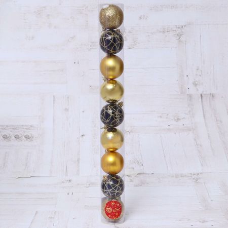 Ёлочные игрушки «Авива», шары новогодние, d=6 см, набор 9 шт., золотистый. Новогодние шары «Авива» — это изысканный декор для тех, кто ценит зимнюю сказку в строгих тонах. В наборе 9 пластиковых игрушек диаметром 6 см в золотистой и коричневатой палитре с однотонной поверхностью. Украшения выполнены в стиле ар-деко, что делает их универсальным акцентом для праздничного оформления. <b> Особенности</b> <ul> <li> Форма — шар, базовый элемент любого новогоднего убранства.</li> <li> Цветовая гамма — сочетание золотистого и теплых коричневых оттенков, создающее ощущение зимнего тепла.</li> <li> Диаметр — 6 см, удобный размер для создания целостного или фонового дизайна на елке.</li> <li> Поверхность — однотонная, без рисунков, подчеркивающая четкость линий и глубину цвета.</li> <li> Стиль — ар-деко, где каждый элемент работает на общий эффект торжества и благородства.</li> <li> Комплектация — 9 шт., идеально подходят как яркие акценты или завершающий элемент декора.</li> <li> Материал — прочный пластик, устойчивый к повреждениям и длительной эксплуатации.</li> </ul> <b> Ёлка как пространство зимней гармонии</b> Эти шары создают образ Нового года, где важны не яркие краски, а баланс света и формы. Золотые и темные тона добавляют дереву благородства, но остаются в рамках классической зимней эстетики. Используйте игрушки как основу или как часть уже существующей композиции — они одинаково хорошо работают в разных интерьерах и тематиках праздника.