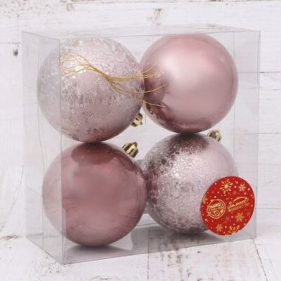 Ёлочные игрушки «Классика», шары новогодние, набор 4 шт., d=8 см, нежно — розовый. Новогодние шары нежно-розового цвета — это изысканный акцент для праздничной елки в стиле шебби-шик. Четыре пластиковые игрушки диаметром 8 см станут мягким, но заметным элементом декора, добавляя интерьеру романтичности и уюта без излишней вычурности. Такие украшения идеально подходят для создания зимнего праздника с легким и светлым настроением. <b> Детали</b> <ul> <li> Цвет: мягкий розовый, однотонный.</li> <li> Форма: классический шар.</li> <li> Материал: прочный и легкий пластик.</li> <li> Диаметр одного элемента — 8 сантиметров.</li> <li> В наборе — 4 украшения.</li> <li> Стиль: создано специально для оформления в стиле шебби-шик.</li> </ul> <b> Праздник начинается с лаконичного блеска</b> Эти шары подходят тем, кто хочет добавить елке не только цвет, но и эмоциональную окраску. Нежно-розовый оттенок создает ощущение тепла и заботы, а их размер позволяет сделать композицию на елке завершенной и сбалансированной. Такие украшения легко использовать как самостоятельные акценты или в сочетании с белыми, кремовыми или серебряными элементами, чтобы подчеркнуть атмосферу зимней сказки.