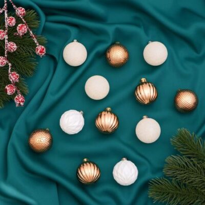 Главная » Товары для детей Ёлочные игрушки Просмотров 4 Ёлочные игрушки «Изабель» узоры, шары новогодний, d=4 см, набор 16 шт., белый/золотистый. Зимнее волшебство