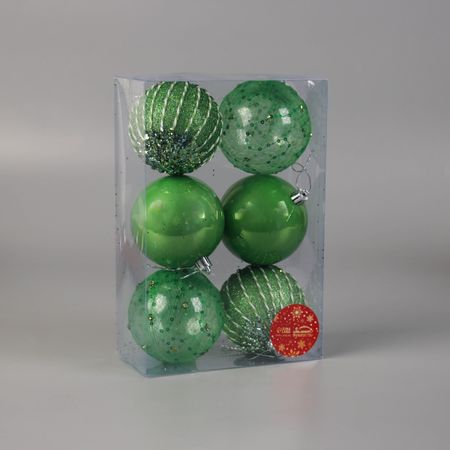Ёлочные игрушки «Кейлеб», шары новогодние, d=8 см, набор 6 шт., зеленый. Новогодние шары «Кейлеб» — это стильное украшение для тех, кто любит праздничный минимализм с акцентами на детали. В наборе 6 пластиковых игрушек диаметром 8 см: часть — зеленые, часть — прозрачные с рисунком. Такое сочетание добавляет елке глубины и света без излишней пышности. Украшения подходят для скандинавского минимализма и стиля шебби-шик, где важна утонченность. <b> Что в комплекте</b> <ul> <li> Сочетание зеленых и прозрачных шаров создает эффект объемного, «живого» света на елке.</li> <li> Рисунок на прозрачных игрушках добавляет декору индивидуальности без лишнего контраста.</li> <li> Пластик обеспечивает прочность и долгий срок службы — украшения можно использовать из года в год.</li> </ul> <b> Как украсить елку</b> Эти шары подойдут как основной элемент оформления или яркое дополнение к уже существующему дизайну. Прозрачные детали добавляют воздушности, а зеленые — уюта. Их можно чередовать между собой или использовать группами — чтобы создать акценты на разных уровнях елки. Такой декор подчеркнет современный вкус и подарит ощущение теплого праздника.