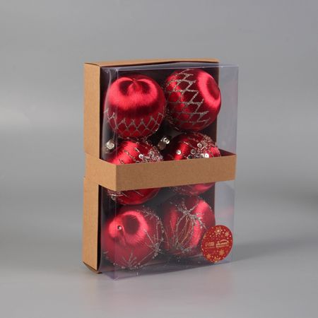 Ёлочные игрушки «Эйден», шары новогодние, d=8 см, набор 6 шт., красный. Новогодние шары с рисунком — это яркий и стильный элемент для украшения елки в преддверии праздника. Шесть пластиковых игрушек диаметром 8 см станут универсальным решением для создания новогоднего настроения в стиле барокко или скандинавского минимализма. Насыщенный красный цвет и декоративные узоры добавляют образу торжественности и индивидуальности. <b> Детали</b> <ul> <li> Цвет: глубокий красный с декоративным рисунком.</li> <li> Форма: классический шар.</li> <li> Материал: прочный пластик.</li> <li> Диаметр одного элемента — 8 сантиметров.</li> <li> В наборе — 6 штук.</li> <li> Стиль: подходит для оформления в стиле новогоднего барокко и скандинавского дизайна.</li> </ul> <b> Добавьте истории вашему празднику</b> Эти шары — не просто украшения, а элементы новогодней атмосферы, которые задают тон всему интерьеру. Рисунок на поверхности добавляет каждому элементу характер, а крупный размер делает их заметными даже в насыщенной композиции. Украшения легко комбинировать с другими оттенками и стилями, создавая гармоничный образ праздника. Пластик обеспечивает долговечность — они останутся частью вашего декора из года в год.