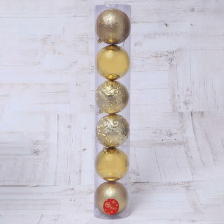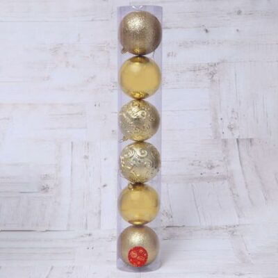 Ёлочные игрушки «Амаль», шары новогодние, пластик, набор d=10 см, 6 шт., золотистый. Новогодние шары «Амаль» — это набор из 6 золотистых украшений диаметром 10 см, выполненных в стиле классики, ар-деко и новогоднего барокко. Простота форм и благородство цвета делают их универсальным выбором для праздничной елки — они добавляют сияние и уют без лишней пышности. <b> Особенности</b> <ul> <li> Диаметр каждого элемента — 10 см, обеспечивающий заметность и гармонию на елке.</li> <li> Цвет — насыщенный золотистый, без дополнительных узоров, подчеркивающий строгость дизайна.</li> <li> Материал — прочный пластик, подходящий для многократного использования.</li> <li> Стиль — сочетание классики, ар-деко и новогоднего барокко для разнообразных интерьеров.</li> <li> Форма — шар, проверенный временем как универсальный элемент елочного декора.</li> </ul> <b> Праздник начинается с порядка</b> Эти игрушки созданы для тех, кто ценит торжественность без излишеств. Их можно равномерно распределить по елке или использовать как яркие акценты — в любом случае они будут смотреться уместно. Такие шары напоминают о традициях, но остаются в русле современного вкуса. Украшение дома становится частью предпраздничного ритуала, наполненного светлыми ожиданиями.