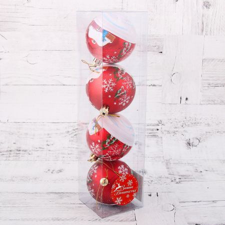 Ёлочные игрушки «Избушка», шары новогодние, d=7 см, набор 4 шт., красный. Украсьте Новый год стильным цветовым решением. Ёлочные игрушки «Избушка», шары новогодние, d=7 см, набор 4 шт., красный приблизят праздничное настроение и наполнят интерьер роскошью. Белый делает красный цвет благороднее, это сочетание символизирует непорочность, безусловную любовь и самоотверженность. Если вам близки эти качества, то смело выбирайте именно такую расцветку праздничного убранства. Такие шары идеально сочетаются с украшениями в форме резных снежинок. Преобразите новогодний интерьер очаровательной элегантностью.
