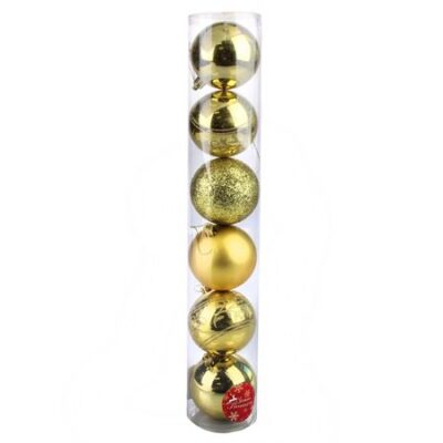 Ёлочные игрушки «Узор ассорти» , шары новогодние, пластик, набор d=8 см, 6 шт., золотистый. Пластиковые новогодние шары золотистого цвета с узором — это стильное и праздничное решение для украшения елки. Игрушки диаметром 8 см выполнены в классической форме и дополнены декоративным рисунком, что делает каждую из них особенной. Набор из 6 элементов подходит для создания акцентного или основного декора в стиле ар-деко, барокко или строгой классики. <b> Почему выбирают этот набор</b> <ul> <li> <strong> Узор как знак внимания к деталям:</strong> Каждая игрушка имеет уникальный орнамент, который добавляет образу елки характер и законченность.</li> <li> <strong> Золотистый цвет — мягкий блеск без пафоса:</strong> Украшения создают ощущение праздника за счет света и отражений, а не яркости.</li> <li> <strong> Шесть шаров — достаточно для завершенности:</strong> Комплект позволяет равномерно заполнить пространство елки или стать ее стилистическим акцентом.</li> <li> <strong> Прочный пластик — надежность в каждом элементе:</strong> Материал выдерживает многократное использование и сохраняет внешний вид даже после нескольких праздников.</li> </ul> <b> Ёлка с душой</b> Эти игрушки созданы не просто для красоты, а чтобы рассказать историю праздника через узор и свет. Они не требуют идеального порядка и становятся частью семейной традиции. Подходят как для первого украшения, так и для тех, кто дорабатывает уже любимый образ елки. Такие шары говорят о вкусе и настроении без лишних слов.