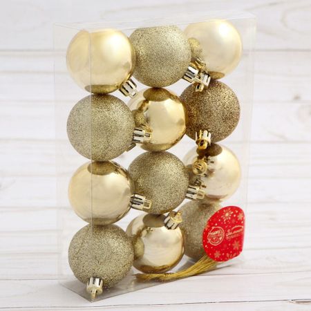 Ёлочные игрушки «Глянцевый блеск» , шары новогодние, пластик, набор d=5 см, 12 шт., золотистый. Пластиковые новогодние шары золотистого цвета с глянцевой поверхностью — это яркое, но умеренное решение для праздничного украшения елки. Игрушки диаметром 5 см выполнены в классической форме и подходят под стили ар-деко, барокко и строгой классики. Набор из 12 элементов станет плотным наполнением для дерева или дополнит уже существующий декор, добавив ему света и торжественности. <b> Почему выбирают этот набор</b> <ul> <li> <strong> Глянец как акцент на празднике:</strong> Поверхность игрушек мягко отражает свет гирлянд, создавая ощущение зимнего сияния без излишней яркости.</li> <li> <strong> Золотистый цвет — тепло и свет в одном решении:</strong> Украшения добавляют елке уюта и зимнего настроения, не нарушая общего стиля.</li> <li> <strong> Двенадцать игрушек — достаточно для завершенности:</strong> Комплект позволяет создать цельную композицию без лишних покупок.</li> <li> <strong> Прочный пластик — надежность в каждом элементе:</strong> Материал сохраняет внешний вид годами, не царапается и не тускнеет.</li> </ul> <b> Ёлка, которая сияет правильно</b> Эти шары созданы для тех, кто любит праздновать со вкусом, а не с пафосом. Глянцевая поверхность и золотой оттенок делают елку живой и наполненной светом. Подходят как для первого украшения, так и для тех, кто дорабатывает семейную традицию с вниманием к деталям.
