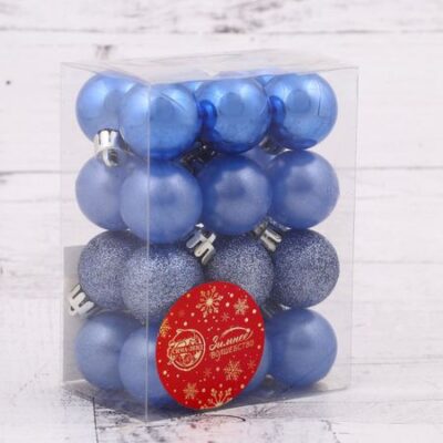 Ёлочные игрушки «Камея», шары новогодние, d=3 см, набор 24 шт., голубой. Новогодние шары «Камея» — это мягкий и лаконичный набор для украшения елки в голубой гамме. В комплекте 24 пластиковые игрушки диаметром 3 см с однотонной поверхностью, выполненные в форме шара и оформленные в стиле шебби-шик. Это универсальное решение для тех, кто любит создавать атмосферу зимнего праздника с акцентом на свет, форму и уют. <b> Особенности</b> <ul> <li> Форма — шар, классический элемент любого новогоднего декора.</li> <li> Цветовая гамма — голубые оттенки, напоминающие свежевыпавший снег и создающие ощущение морозного покоя.</li> <li> Диаметр — 3 см, компактные размеры для плотного или фонового оформления дерева.</li> <li> Поверхность — однотонная, подчеркивающая благородство цвета и строгость формы.</li> <li> Стиль — шебби-шик, где важны не яркие контрасты, а мягкость и естественность линий.</li> <li> Комплектация — 24 штуки, достаточно для полного украшения елки средней величины.</li> <li> Материал — прочный пластик, подходящий для многократного использования и длительного хранения.</li> </ul> <b> Праздник начинается с одного мягкого блика</b> Эти шары создают образ Нового года, где каждый элемент работает на общий стиль и спокойное настроение. Голубой цвет и миниатюрные формы делают елку частью вашей семейной традиции. Используйте их как основу или как дополнение к уже имеющемуся декору — они одинаково хорошо усиливают атмосферу зимнего торжества и предпраздничного тепла.