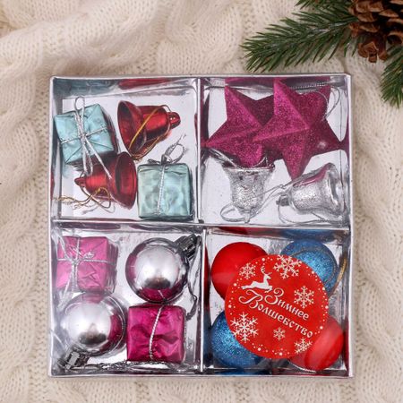 Ёлочные игрушки «Карнавал», набор 16 шт. (6 шаров, 4 подарка, 2 звезды, 4 колокольчика). Пусть Новый год дарит лишь радость! В период зимних праздников не оставляйте без украшений ни один уголок дома, ведь именно они создают торжественное настроение. Декор в едином стиле сделает новогоднее убранство гармоничным . Ёлочные игрушки «Карнавал», набор 16 шт. (6 шаров, 4 подарка, 2 звезды, 4 колокольчика) — это готовый наряд для елки, и прекрасные отдельные украшения. Сделайте праздник ярким!