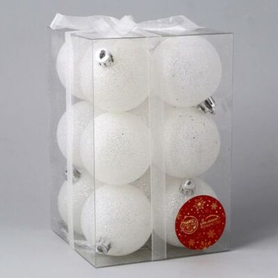 Ёлочные игрушки «Блестящая дымка», шары новогодние, пластик, набор d=6 см, 12 шт., белый. Окутайте помещение дымкой нежности и волшебства. Выбирая белые тона для оформления новогоднего интерьера, следует помнить несколько важных моментов. Цвет чистоты и безмятежности лучше сочетать с яркими акцентами. А если желаете выдержать единство цвета, то разнообразьте убранство различными фактурами и материалами. Ёлочные игрушки «Блестящая дымка», шары новогодние, пластик, набор d=6 см, 12 шт., белый очаровательно смотрятся с новогодними игрушками в виде бантов и цветов. Создайте особенный новогодний интерьер в белом цвете.