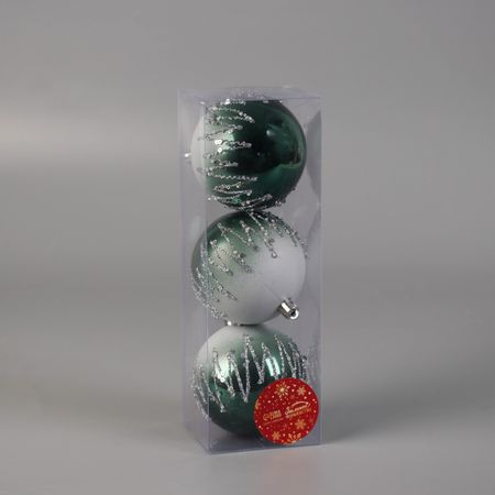 Ёлочные игрушки «Акселл», шары новогодние, d=8 см, набор 3 шт., зелено-белый. Новогодние шары «Акселл» — это крупные украшения для тех, кто создает праздничный декор с акцентом на стиль. В наборе 3 пластиковых игрушки диаметром 8 см с рисунком в зелено-белых тонах — сочетание цветов напоминает покрытые инеем ветви и добавляет елке зимней свежести. Эти шары органично вписываются в интерьер в стиле шебби-шик, где важны уют и эстетика. <b> Почему выбирают</b> <ul> <li> Рисунок с контрастными оттенками делает каждый шар уникальным без излишней вычурности.</li> <li> Зелено-белая палитра легко сочетается с другими новогодними цветами и не перегружает оформление.</li> <li> Диаметр 8 см обеспечивает заметность даже на самой украшенной елке.</li> </ul> <b> Как использовать в интерьере</b> Эти шары подойдут как центральные акценты или дополнение к уже готовому дизайну. Их можно разместить симметрично — чтобы создать строгий порядок, или асимметрично — для более свободного, живого образа. Рисунок и цветовая гамма добавляют декору света и напоминают о традиционных зимних мотивах с современной ноткой.