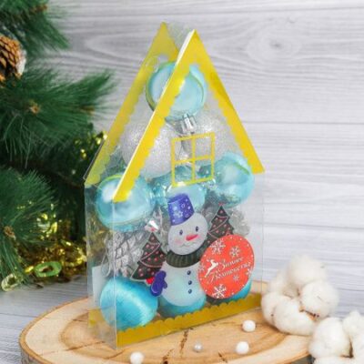 Ёлочные игрушки «Домик», шары новогодние, набор 12 шт. (9 шаров,3 шишки), серебристый/голубой. Новогодние игрушки «Домик» — это лаконичный и стильный набор для украшения елки в серебристо-голубой гамме. В комплекте 12 элементов: 9 шаров и 3 шишки диаметром 3 см, выполненных из пластика и дерева с однотонной поверхностью. Украшения в стиле шебби-шик и фьюжн подходят как для традиционного, так и для современного оформления праздника. <b> Особенности</b> <ul> <li> Формы — шары и шишки, добавляющие елке разнообразия и зимней тематики.</li> <li> Цветовая гамма — сочетание серебристого и голубого, создающее ощущение морозного утра и свежести.</li> <li> Материал — пластик и дерево, обеспечивающие прочность и естественную текстуру декора.</li> <li> Поверхность — однотонная, без рисунков, подчеркивающая мягкость цвета и строгость формы.</li> <li> Стиль — шебби-шик и фьюжн, где важны не яркие акценты, а баланс между светом, формой и фактурой.</li> <li> Комплектация — 12 шт., включая 9 шаров и 3 шишки для создания целостного или фонового дизайна.</li> </ul> <b> Праздник начинается с уюта</b> Этот набор превращает елку в пространство зимнего покоя и доброго настроения. Серебро и голубой, дополненные натуральными текстурами, работают вместе, чтобы создать атмосферу настоящего Нового года. Используйте игрушки как основу или как часть уже существующего декора — они одинаково хорошо добавляют дереву свет, порядок и тепло семейных традиций.