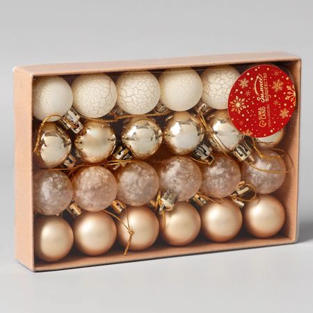 Ёлочные игрушки «Традиция», шары новогодние, пластик, набор d=3 см, 24 шт., золотистый/белый. Новогодние шары «Традиция» — это набор из 24 миниатюрных украшений диаметром 3 см в золотисто-белой гамме. Изделия выполнены из прочного пластика и созданы в стиле классики, ар-деко и новогоднего барокко. Благодаря компактности и лаконичному дизайну они станут универсальным решением для праздничной елки. <b> Особенности</b> <ul> <li> Диаметр каждого элемента — 3 см, идеально подходит для плотного и аккуратного декора.</li> <li> Цветовая гамма — золотистый и белый в случайном порядке, создающие мягкий и теплый контраст.</li> <li> Материал — прочный пластик, устойчивый к повреждениям и безопасный для детей.</li> <li> Стиль — сочетание классики, ар-деко и новогоднего барокко для разнообразных интерьеров.</li> <li> Форма — шар, проверенный временем как базовый элемент праздничного оформления.</li> </ul> <b> Когда порядок становится традицией</b> Этот набор создан для тех, кто любит наполнять дом светом и уютом без лишней пышности. Компактные игрушки легко распределить по елке, создавая равномерное сияние или яркие акценты. Украшение становится не просто обязанностью — это часть предпраздничного ритуала, где каждый элемент говорит о заботе и ожидании чуда.