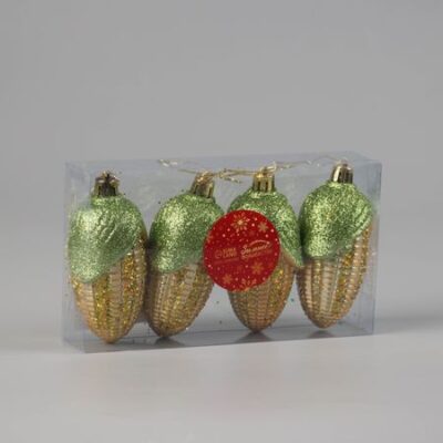 Ёлочные игрушки 4 шт. «Кукуруза» 10×4 см, желтый. Свет летнего поля на зимней елке. Новогодние игрушки «Кукуруза» — это 4 украшения золотистого цвета, высотой 10 см, выполненные из прочного пластика. Игрушки в форме овощей добавляют праздничной композиции нотку природной гармонии и стилистической неожиданности. Дизайн сочетает классическую строгость и мягкость шебби-шик, создавая образ праздника, который остается в памяти надолго. <ul> <li> <strong> Четыре початка — четыре ярких акцента:</strong> Украшения равномерно распределяются по елке, создавая ощущение ритма и завершенности без лишней пестроты.</li> <li> <strong> Форма кукурузы — отсылка к природе и добру:</strong> Это не просто форма — она напоминает урожай, теплые дни и щедрость осени, которую хочется сохранить даже в разгар зимы.</li> <li> <strong> Золотистый цвет — сияние праздничного настроения:</strong> Оттенок усиливает ощущение тепла и торжества, делая каждую игрушку заметным элементом декора.</li> <li> <strong> Однотонность — строгость и элегантность в деталях:</strong> Украшения не требуют дополнительных акцентов — они завершают образ сами по себе.</li> <li> <strong> Пластик — практичный выбор для многолетнего использования:</strong> Не боится повреждений, сохраняет форму и цвет даже после нескольких сезонов.</li> </ul> <strong> Ёлка как связь времен:</strong> Эти игрушки создают не просто украшенное дерево, а часть целостной новогодней истории. Они подходят тем, кто ценит стиль, но не забывает о связи с природой и простыми радостями. «Кукуруза» — не просто декор, а мягкий намек на то, что праздник начинается с благодарности и светлых воспоминаний.