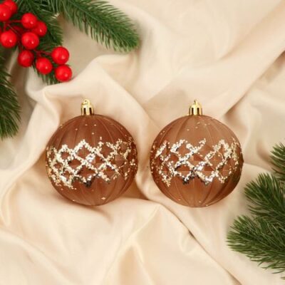 Ёлочные игрушки «Гэбриэл», шары новогодние, d=8 см, 2 шт., сетка, коричневый. Набор из двух коричневых новогодних шаров с сетчатым рисунком отражает датский подход к оформлению праздника — лаконичность и продуманность деталей. Диаметр каждого шара составляет 8 см, что делает их заметным и уместным элементом праздничного декора. <b> Особенности</b> <ul> <li> Два шара с оригинальной сетчатой текстурой, подчеркивающей новогоднюю тематику.</li> <li> Размер 8 см обеспечивает гармоничное сочетание с другими украшениями.</li> <li> Пластиковая основа сочетает легкость и долговечность.</li> <li> Датский стиль в дизайне создает сдержанную и уютную атмосферу.</li> </ul> <b> Создание атмосферы праздника</b> Эти украшения вносят в интерьер тепло и естественность, усиливая праздничное настроение. Коричневый цвет с сетчатым узором добавляет структуру и глубину, формируя визуальный акцент на елке и в праздничных композициях.
