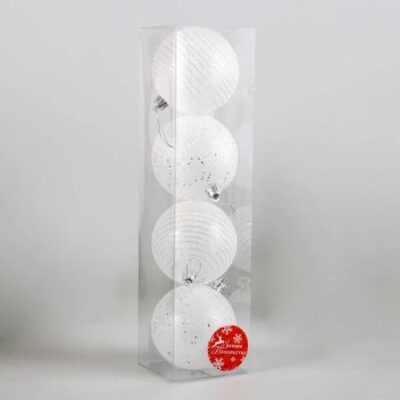 Ёлочные игрушки «Снежинки», шары новогодние, d=8 см, 4 шт., белый. Окутайте помещение дымкой нежности и волшебства. Выбирая белые тона для оформления новогоднего интерьера, следует помнить несколько важных моментов. Цвет чистоты и безмятежности лучше сочетать с яркими акцентами. А если желаете выдержать единство цвета, то разнообразьте убранство различными фактурами и материалами. Ёлочные игрушки «Снежинки», шары новогодние, d=8 см, 4 шт., белый очаровательно смотрятся с новогодними игрушками в виде бантов и цветов. Создайте особенный новогодний интерьер в белом цвете.