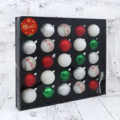 Главная » Товары для детей Ёлочные игрушки Просмотров 2 Ёлочные игрушки «Нембус», шары новогодние, набор 25 шт., d=4 см, белый/красный/зеленый. Зимнее волшебство