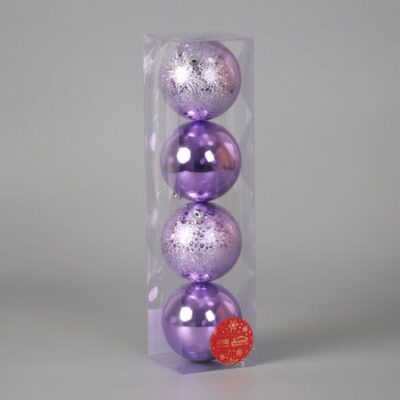 Ёлочные игрушки «Классика», шары новогодние, набор 4 шт., d=8 см, сиреневый. Набор елочных игрушек «Классика» из 4 пластиковых шаров диаметром 8 см в изысканном сиреневом исполнении. Эти однотонные украшения идеально подойдут для создания стильного и утонченного образа новогодней елки в стиле шебби-шик. Прекрасный выбор для тех, кто предпочитает простоту и элегантность в праздничном декоре. Преимущества <ul> <li> Многоразовое использование благодаря прочности пластика.</li> <li> Легкие, удобные в размещении и перемещении на елке.</li> <li> Устойчивы к падениям и не трескаются.</li> <li> Подойдут для украшения любых пространств, как дома, так и в офисе.</li> <li> Простота хранения благодаря компактному размеру.</li> <li> Экологичные, безопасные для детей и домашних животных.</li> <li> Идеальная поверхность для самостоятельного декорирования.</li> <li> Сочетаются с любыми другими украшениями и элементами декора.</li> </ul> Эмоции и призыв к действию Погрузитесь в волшебство Нового года, создавая атмосферу уюта и радости. Эти игрушки подарят вам истинное новогоднее чудо. Преображайте ваш дом с классическими и надежными решениями. Украшайте с удовольствием, радуйте себя и своих близких. Ваш идеальный праздник начинается с правильного выбора.